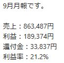 こちらの方は7月中旬から講座を受講して頂いている方ですので、8月は実質的な初月となりますが順調に利益をあげていらっしゃいます。