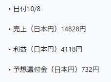 7月中旬から講座を受けて頂いている方のご報告ですが、実質的な1カ月目にあたる8月の利益がいきなり35000円です。
